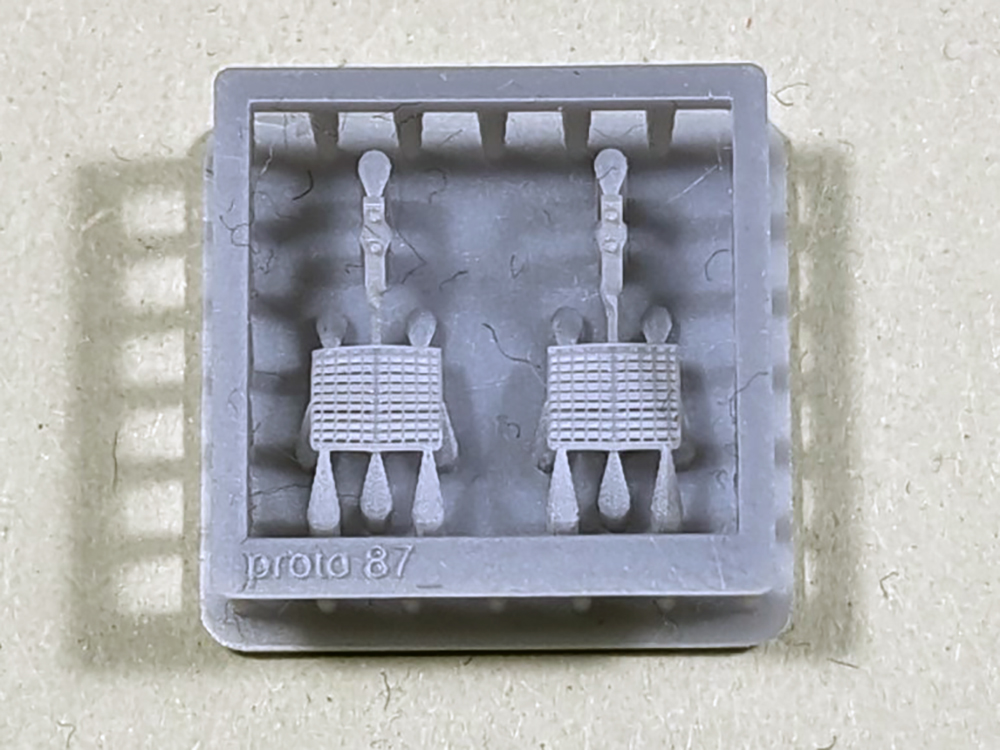2 Stück fein durchbrochene moderne Rangiertritte aus Kunststoff (3D-Druck), geeignet für diverse moderne Güterwagen.