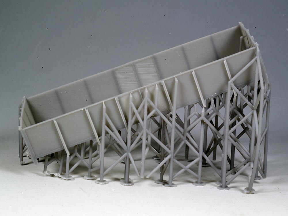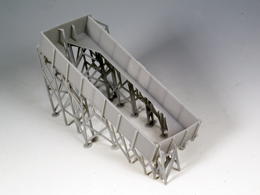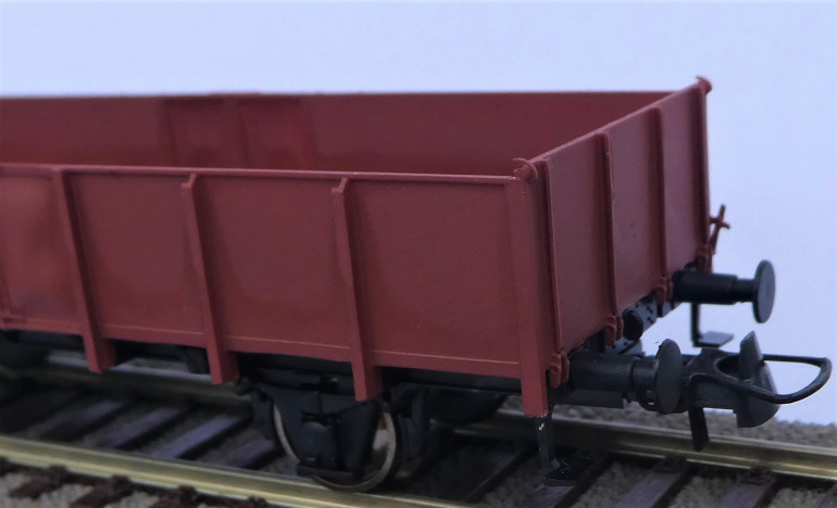 Verarbeitungshinweis:Bauteile vorsichtig von den Supporter des Drucks abtrennen, z.B. Modellsäge. Nicht mit einem Seitenschneider o.ä. arbeiten! Kanten mit Feile/Schmirgellatte versäubern. Druckstreifen müssen bei Bedarf mit Glashaarradierer / Buffer aus dem Nagelmodellagebereich geglättet werden.Den Wagenkasten rotbraun RAL 8012 lackieren. Zur Lackierung empfehlen wir seidenmatte Farben.