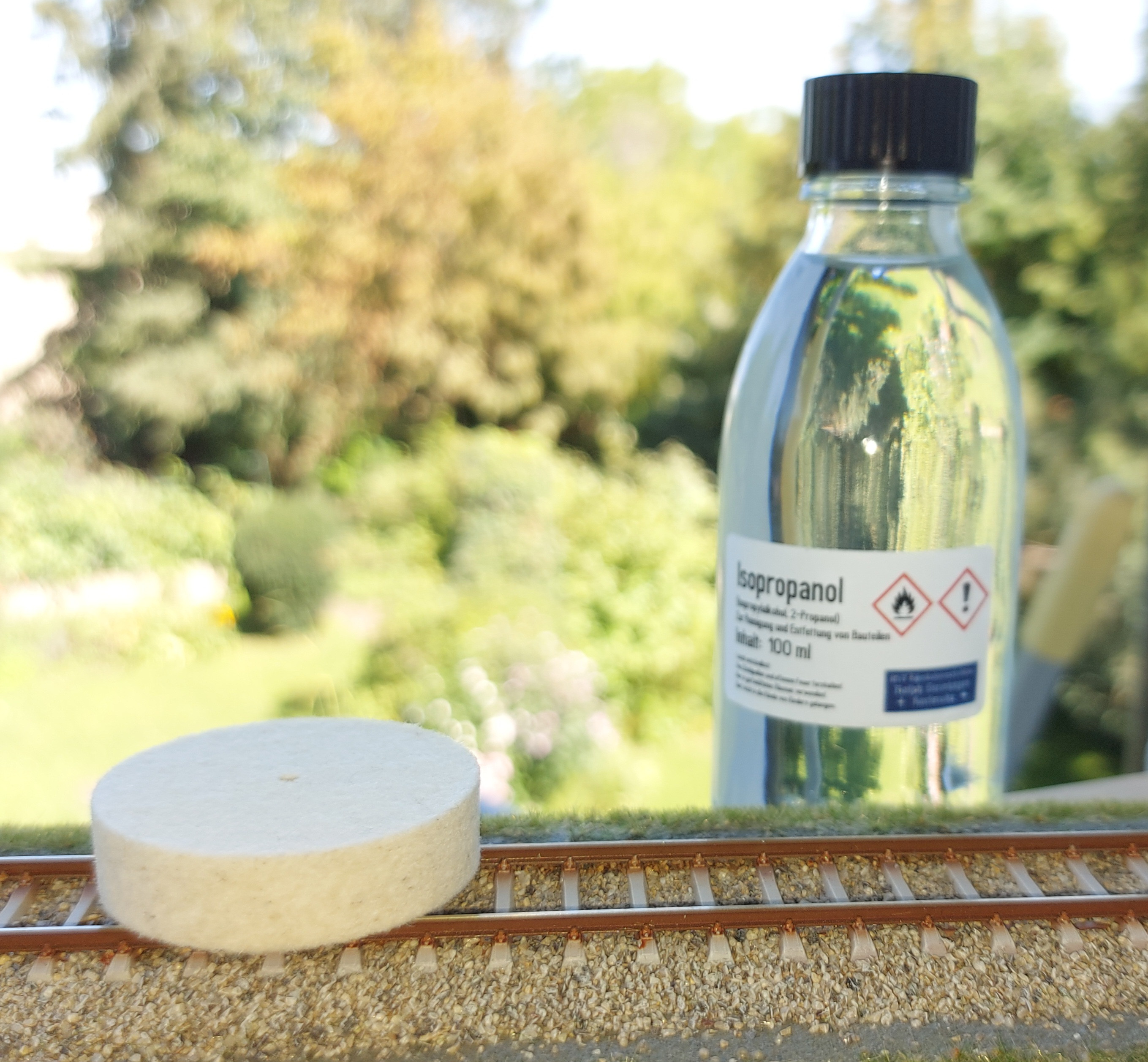 Hochwertiges, formstabiles Filzrad zum Polieren und speziell zur Gleisreinigung mit Isopropanol oder Feuerzeugbenzin (Ø 40 mm, Höhe 10 mm). Fusselt nicht und nimmt sehr viel Schmutz vom Gleis auf.